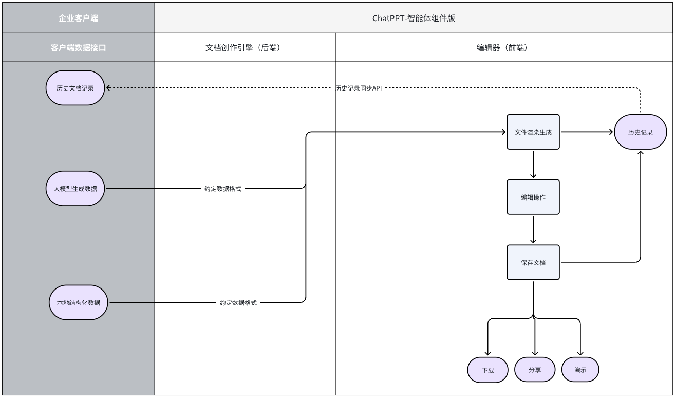| 文档生成 | 基于自有数据输入生成PPT文档 | 针对客户数据类型定制数据结构,以及渲染判断逻辑 | 支持 | 支持 | 支持 |